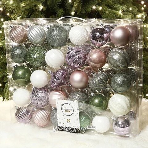 Набор пластиковых шаров Magic Suite: Эльфийские Трели, 6-7 см, 60 шт (Kaemingk)