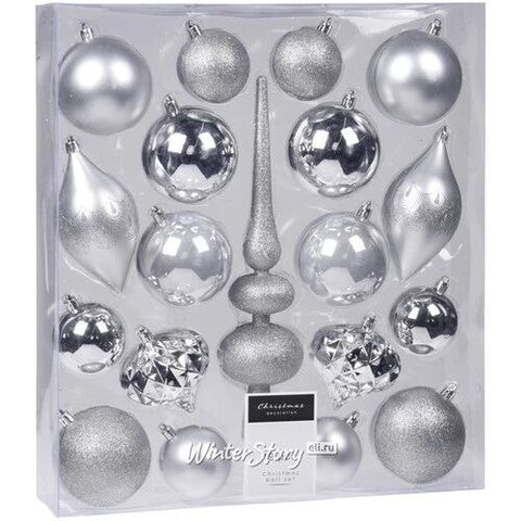 Набор пластиковых шаров с верхушкой Сен-Дени - Серебристая Капель, 19 шт (Koopman)
