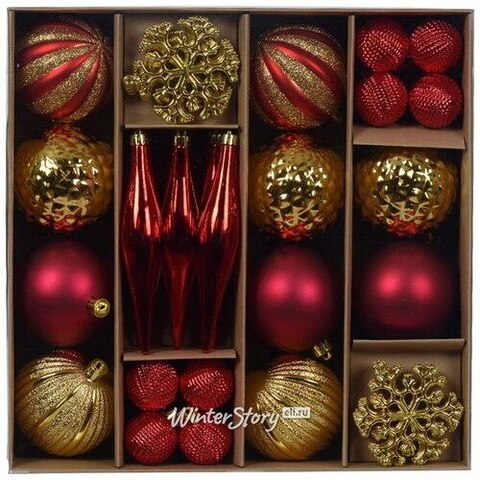Набор елочных игрушек Glory Brilliance 46 шт красный с золотым, 8 см, пластик (Winter Deco)