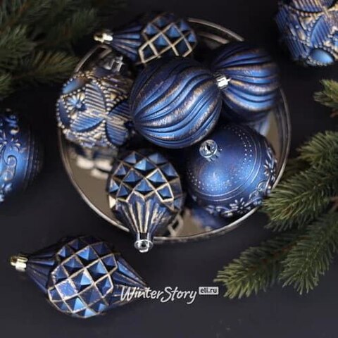 Набор пластиковых шаров Cosmo Синий Бархат, 6-10 см, 26 шт (Winter Deco)