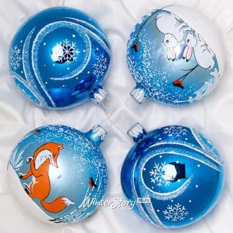 Набор стеклянных елочных шаров Лесная опушка 8 см, 4 шт (Фабрика Елочка)