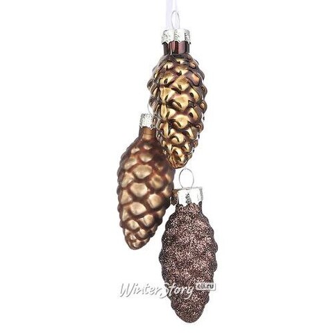 Стеклянная елочная игрушка гроздь Шишки - Prima Neve 11 см, шоколадный mix, подвеска (Christmas Deluxe)