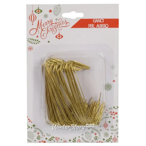 Крючки для елочных игрушек Wellman 6 см, 100 шт, золотые (Due Esse Christmas)