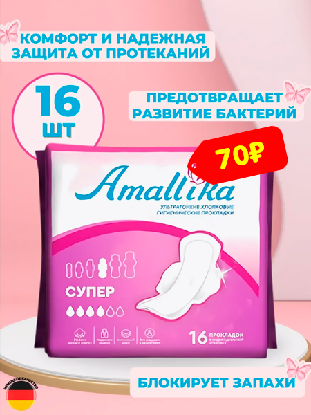 Прокладки гигиенические женские ультратонкие хлопковые Amallika Супер