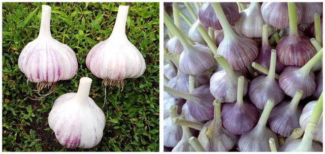 В луковице 4-7 сочных, ароматных и хрустящих зубков. Окраска сухих чешуй белая с фиолетовыми прожилками,