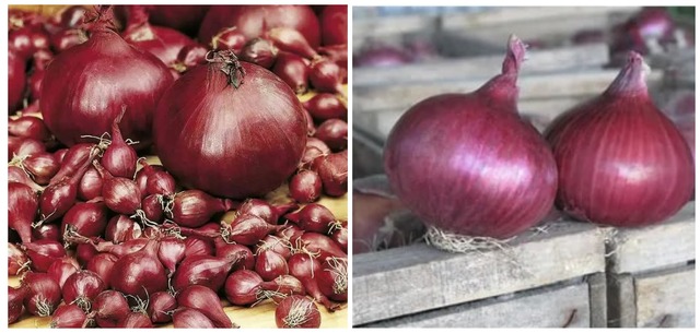 Сухие чешуи тёмно-красного цвета, сочные - белые с тёмно-красным эпидермисом.