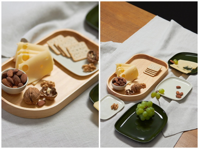 Наборы сервировочных тарелок на деревянном подносе Sorrento
