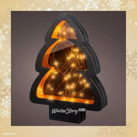 Новогодний светильник Елка Night light 28*21 см, 40 теплых белых микро LED ламп, на батарейках, IP20 (Kaemingk)