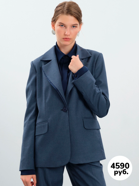 Жакет с уникальным лацканом, предлагающий вариативность носки - ваш выбор в деловой системе. Брюки комфортной посадки и утонченная блуза изысканно дополняют образ.