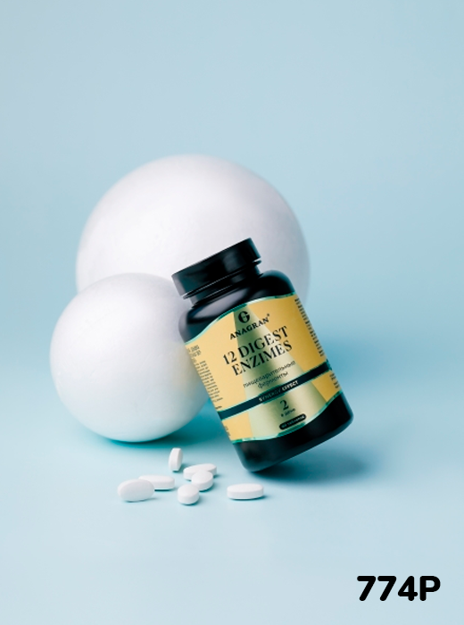 Пример: 12 пищеварительных ферментов (способствуют улучшению процесса пищеварения, облегчают переваривание углеводов, жиров и белков пищи, что способствует их более полному всасыванию в тонком кишечнике.). У таблетки несколько оболочек, которые растворяются поэтапно. Благодаря этому ферменты начинают работать именно там, где они нужны — шаг за шагом по всему пищеварительному тракту.