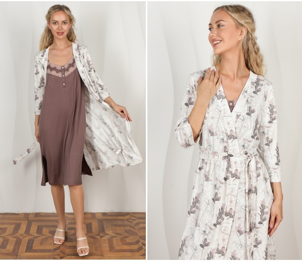 В наличии последние 2 комплекта халат+сорочка, в размере L, по цене всего 1800 руб. Качество изумительное!