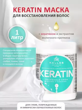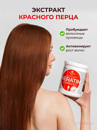 Kallos Маска Кератин с КРАСНЫМ перцем против выпадения и для роста волос 500 мл.