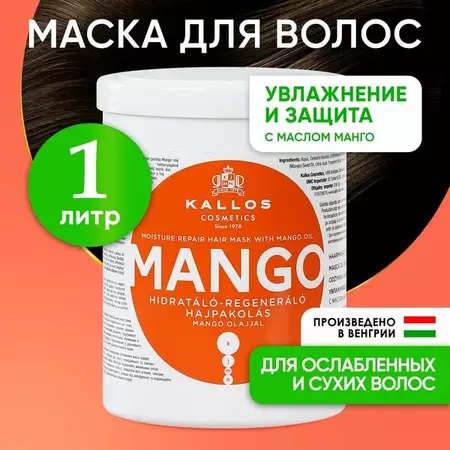 KALLOS Маска МАНГО для волос с маслом манго 1л