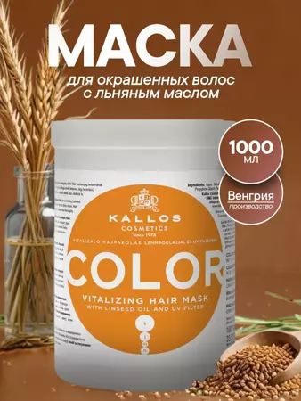 Маска с оптимизированной формулой для ухода за окрашенными и повреждёнными волосами с льняным маслом и УФ-фильтром
