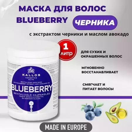 Оживляющая маска для повреждённых, сухих, окрашенных и химически обработанных волос с экстрактом черники и маслом авокадо