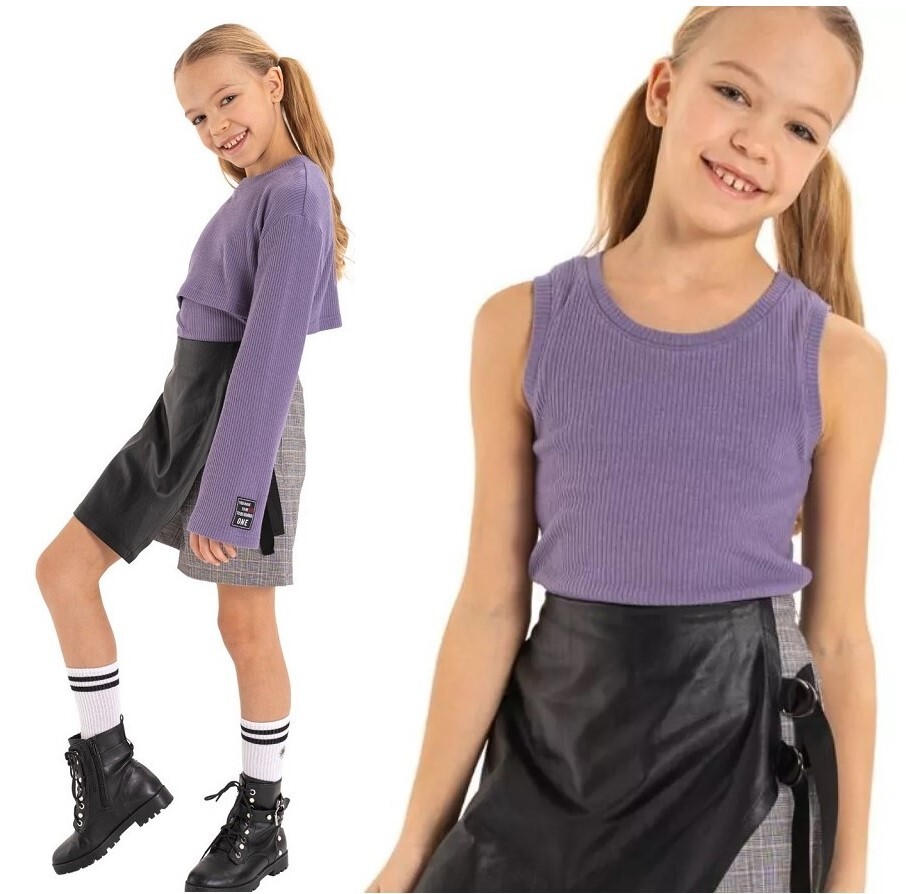 Внизу майка и поверх укороченный джемпер с длинными рукавами, размеры 128-164