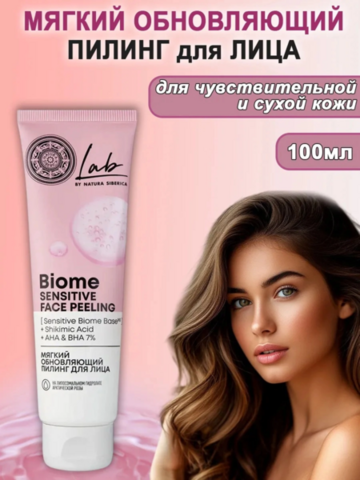 Natura SibericaLAB Biome Sensitive Мягкий обновляющий пилинг для лица, 100 мл