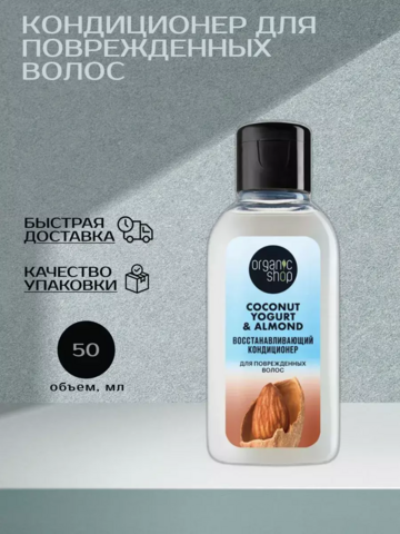 ORGANIC SHOP Coconut yogurt Кондиционер для поврежденных волос "Восстанавливающий", 50 мл