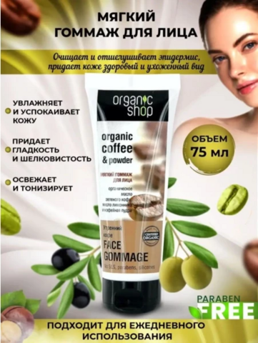 Organic shop Мягкий гоммаж для лица "Утренний кофе" 75 мл