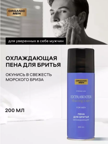 Organic Men ПЕНА ДЛЯ БРИТЬЯ ОХЛАЖДАЮЩАЯ «EXTRAWATER», 200 мл