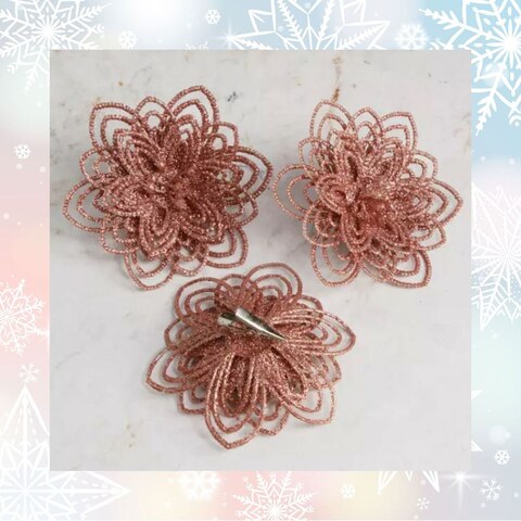 Искусственная пуансеттия Candelaria 12 см, 3 шт, розовое золото, клипса (Koopman)
