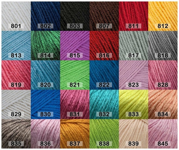 49% шерсть, 51% акрил, 730 м, 100 г.