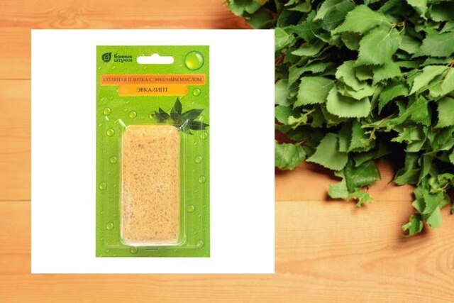Соляная плитка с эфирным маслом Эвкалипт 200г для бани и сауны