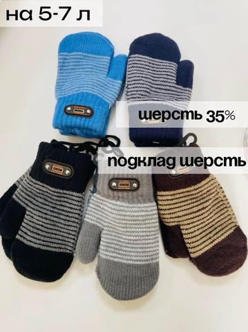Варежки детские утепленные, 5 - 7л.
