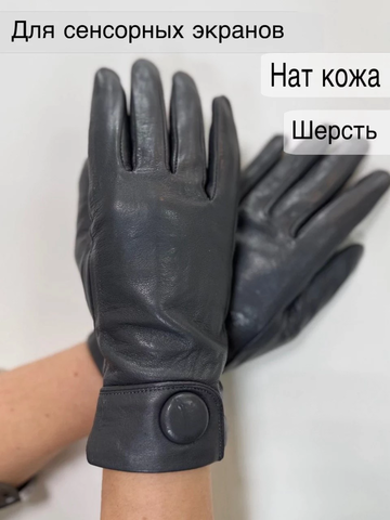 Перчатки женские из натуральной кожи на шерсти для сенсорных экранов
