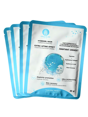 Coco Blues Гидрогелевая маска для лица с пептидами, коллагеном и растительными экстрактими / Лифтинг-эффект, 5 шт. х 30 г