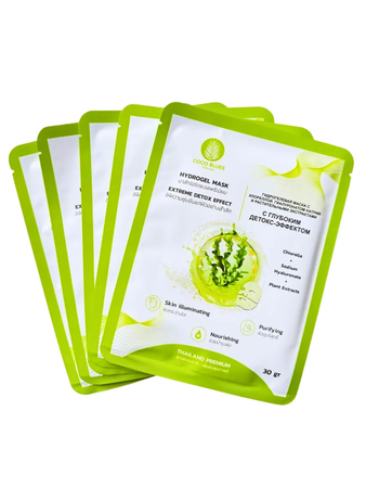 Coco Blues Гидрогелевая маска с хлореллой, гиалуронатом натрия и растительными экстрактами / Глубокий детокс-эффект, 5 шт. х 30 г