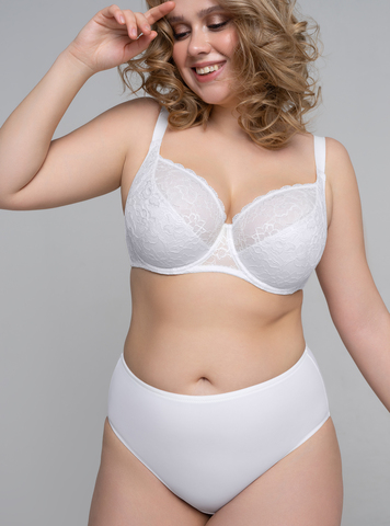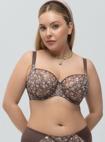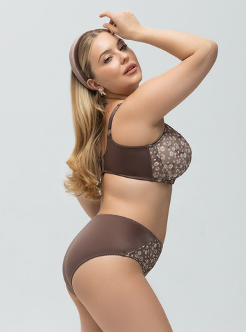 Особый крой полупоролоновой чашки надёжно фиксирует, приподнимает и собирает грудь с боков, придаёт ей округлую форму.