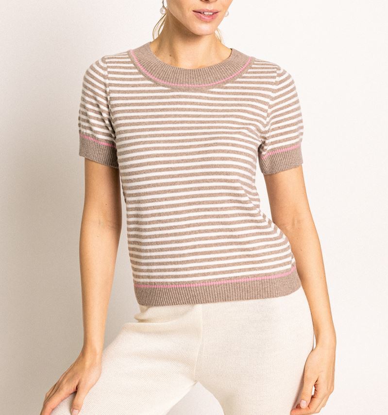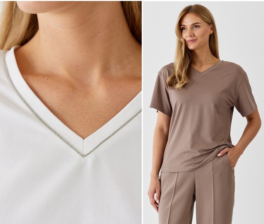 Футболка с отделкой цепочкой по горловине, капучино.