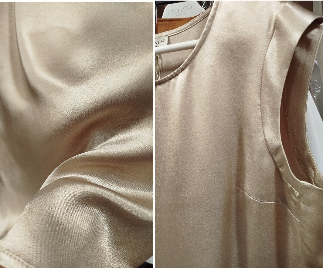 Модель из экологичной вискозы и ресайкл-материалов поражает своей мягкостью и струящимся силуэтом.