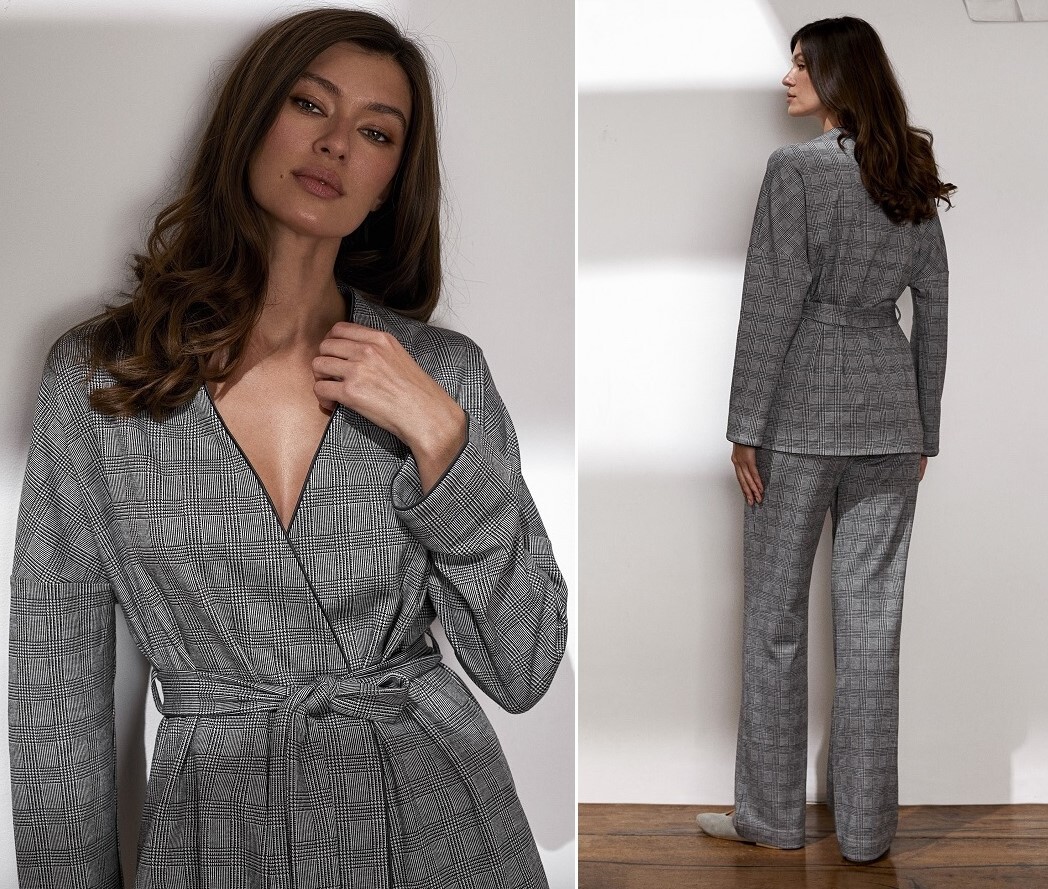 Пижама выполнена из струящегося шелкового атласа с благородным сатиновым блеском на основе натуральной вискозы. Изделие из такого материала едва ощущается на теле, струясь мягкими волнами с гладкой фактурой.