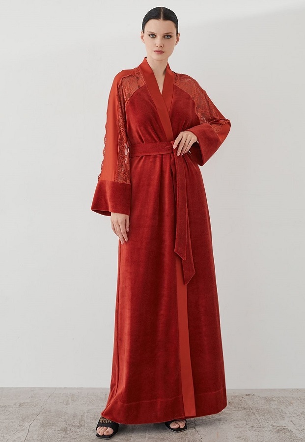 Этот халат из мягкого бамбукового велюра с кружевными и атласными вставками - словно нежное объятие, в которое хочется закутаться!