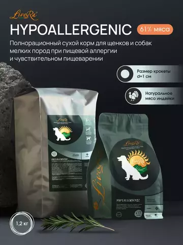 Корм для собак 866 рублей итого /HYPOALLERGENIC 1.2 кг