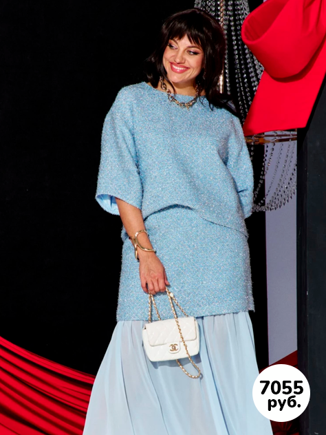 В коллекции — праздничные платья с блеском, элегантные костюмы и комплекты, яркие и стильные образы. Все вещи сделаны из качественных тканей с эффектными деталями, соответствующими последним тенденциям моды PLUS SIZE!