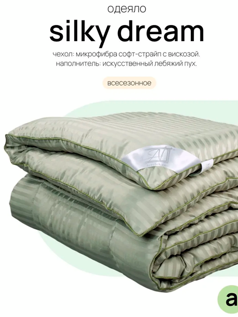 С наполнителем из искусственного лебяжьего пуха, в чехлах из микрофибры Софт-Страйп с вискозой. Шелковистый блеск материала в сочетании с жаккардовым рисунком выглядят очень изящно, а атласный кант по всему периметру завершает идеальный вид этого одеяла. Одеяла из коллекции SILKY DREAM мягкие, уютные, и шелковистые, располагают к быстрому засыпанию и крепкому здоровому сну..