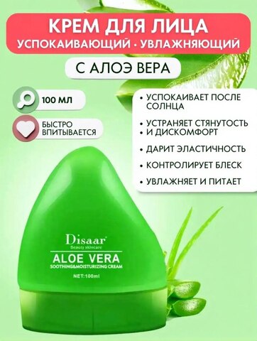 DISAAR Крем для лица ALOE VERA Увлажняющий, Успокаивающий с АЛОЭ 100мл (листок)