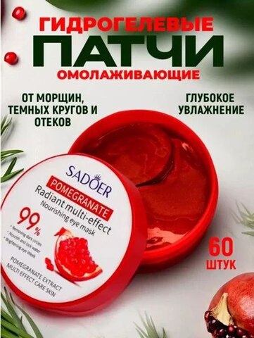 SADOER Омолаживающие гидрогелевые патчи от темных кругов под глазами с соком граната 60 шт
