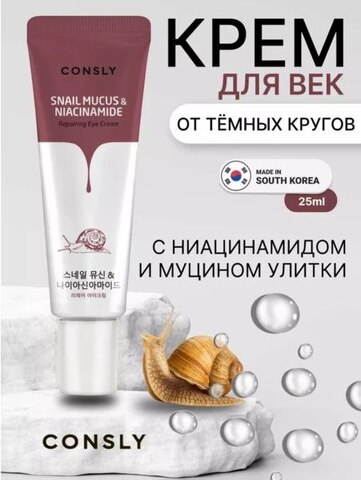 Consly Восстанавливающий крем для век с муцином черной улитки и ниацинамидом, 25 мл.