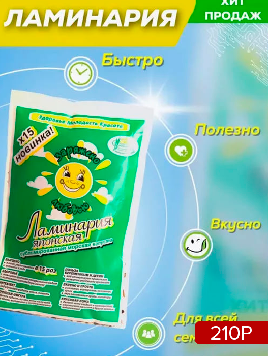 🔥Одна из основных ценностей ламинарии – высокое содержание органического йода (0,06 – 0,09%), который легко усваивается организмом и не вызывает аллергических реакций.