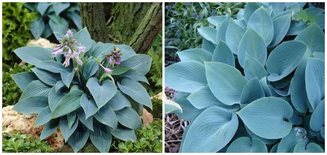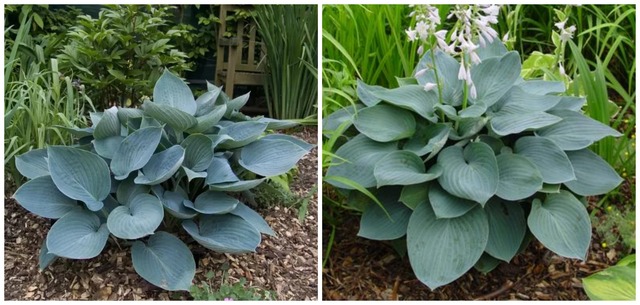 Халкион - хоста с одной из лучших голубых окрасок листьев. Цветки тёмно-лиловые. Ширина куста 60 см, высота 40 см.