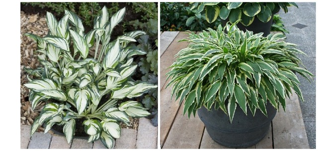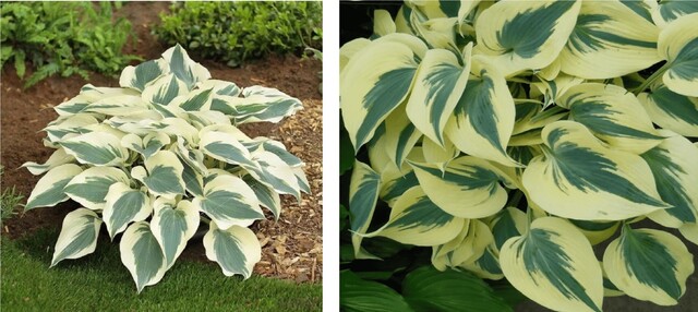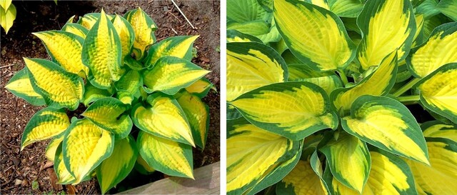 Довольно компактный сорт высотой до 30 см, диаметром 50 см. Эффектные сине-зеленые листья с золотисто-желтым центром, увеличивающимся в размерах по мере вегетации.