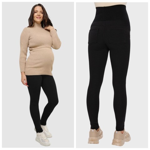 Утепленные легинсы для беременных из плотного трикотажа с меховой изнаночной стороной