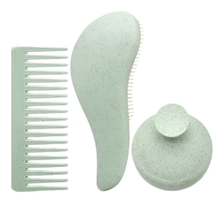 Kristaller Набор для волос: щетка-массажер для мытья головы, гребень, расческа-капля, зеленый