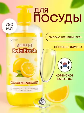 Средство для мытья посуды SolaFresh LIME с ароматом японского чая матча 1500 мл, бутылка