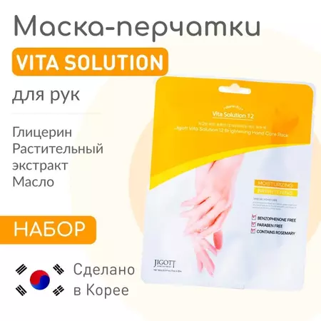 Маска-перчатки для рук осветляющие Jigott Vita Solution 12 Brightening Hand Care Pack 14мл