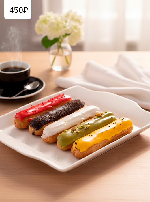 🍰 А десерты — чизкейки и эклеры — станут идеальным дополнением к чашечке свежезаваренного кофе. Нежные начинки, воздушное тесто и утонченный дизайн порадуют даже самого искушённого гурмана.